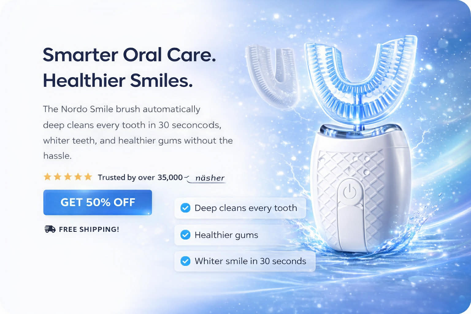 Smarter oral care designed for real life. Nordo Smile helps you keep your routine simple, consistent, and refreshingly easy—so you can enjoy a cleaner-feeling smile every day.