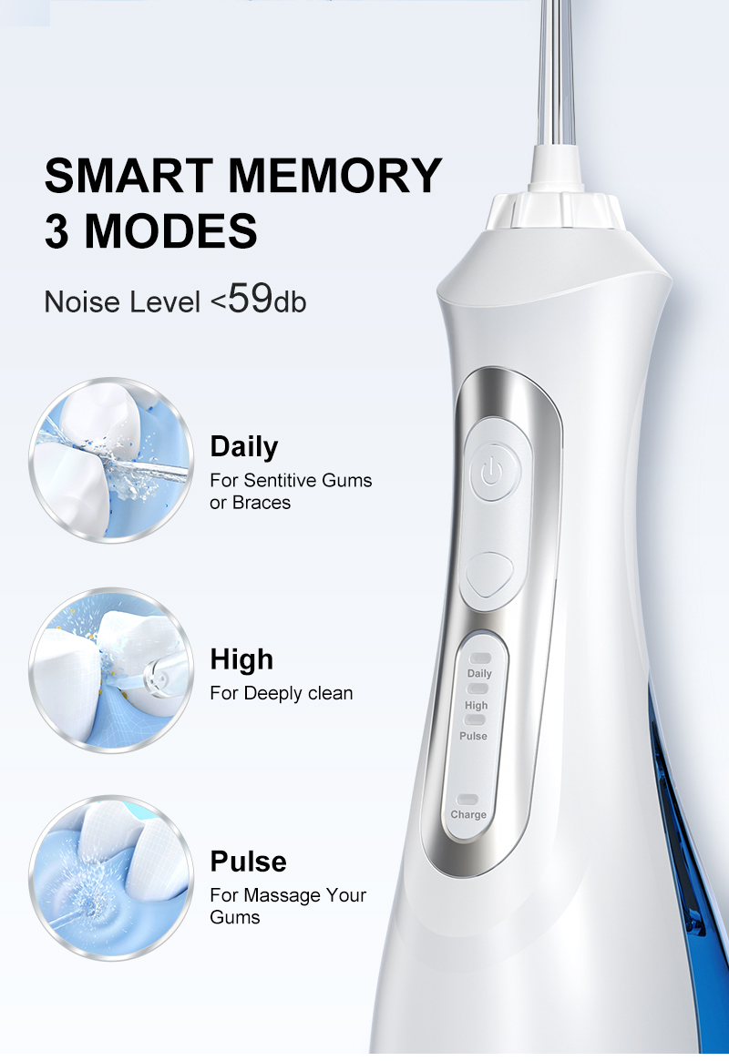 Three modes that match your comfort level. Not every mouth needs the same intensity every day, which is why multiple modes matter. Daily mode is a great starting point—especially if you’re new to water flossing, have sensitive gums, or wear braces and want gentler care around brackets and wires. The quieter operation also makes it easy to use regularly without feeling “too intense.” The goal is comfort plus consistency: start gentle, build the habit, and increase power only when it feels right for you.